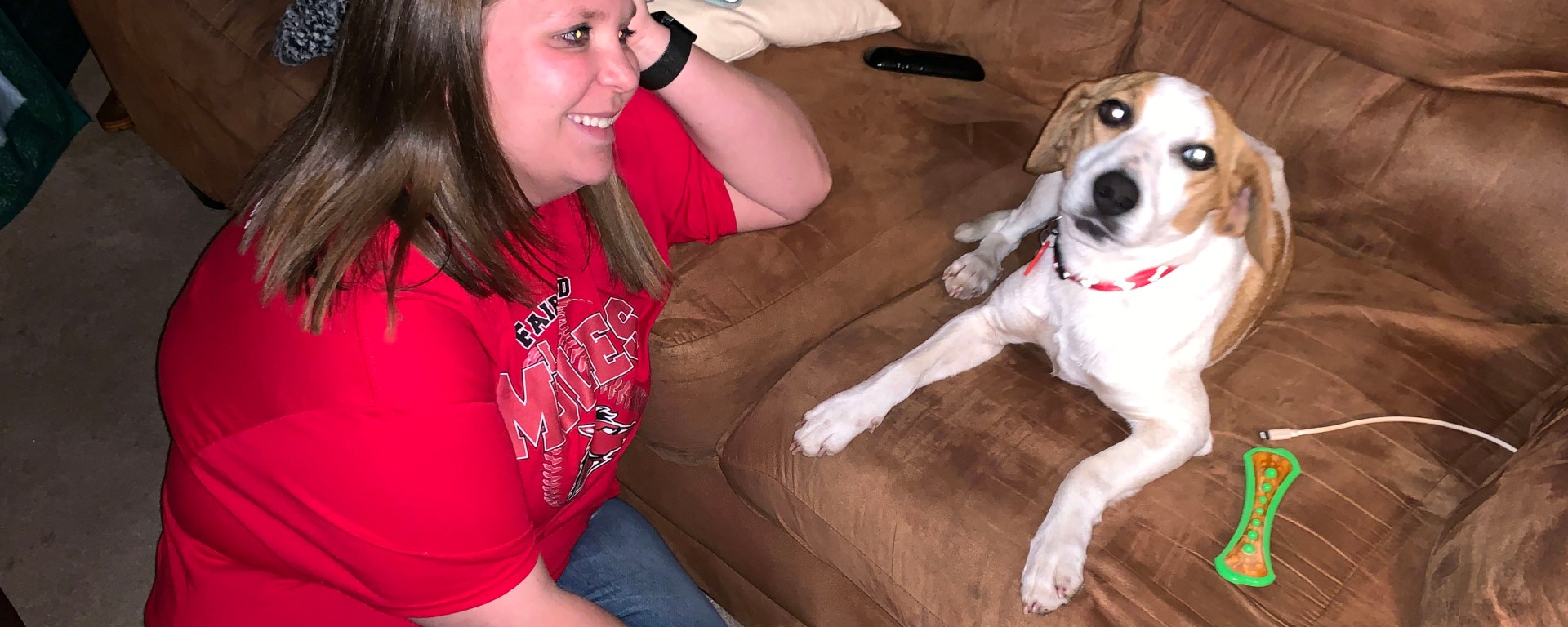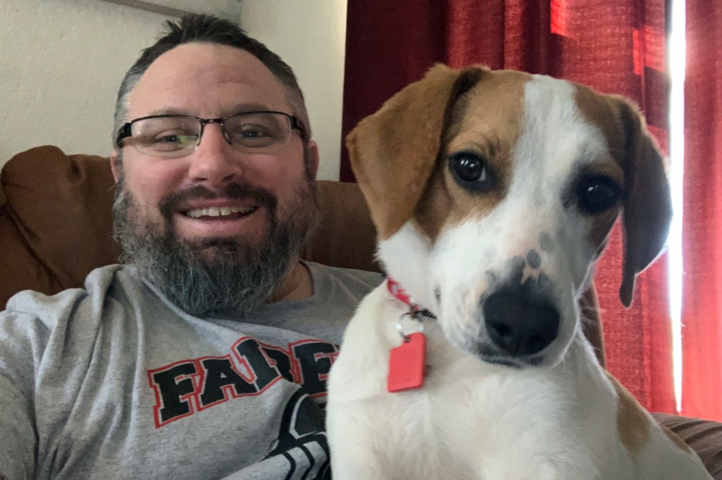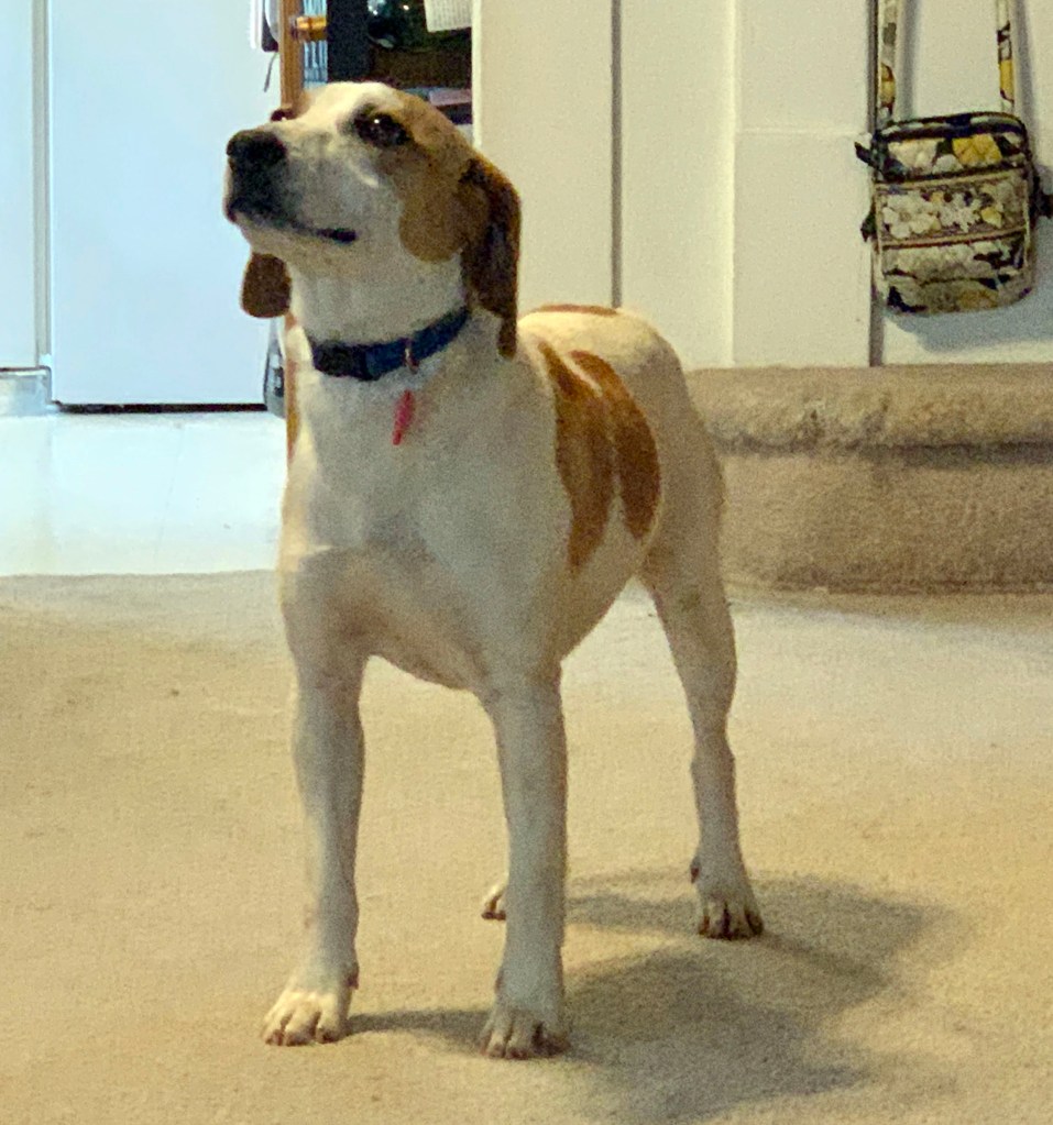So, earlier this week, the Wayne County Humane Society posted a beagle/fox hound mix, guessed at about a year old. My first dog as a kid was a beagle. Sarah’s brother raises fox hounds. The post said good with cats, mild mannered. So, Thursday, I came home from work and picked Sarah up. We went and asked to see him.