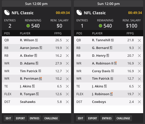 Switched it up a bit this week as I have an Early games only lineup, along with my cash play. Early slate was for a Mission complete on Draftkings.