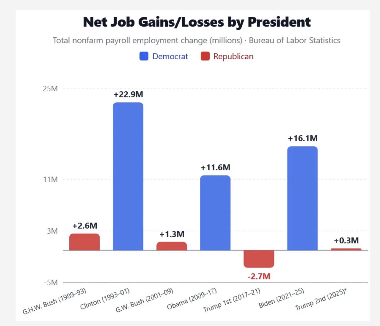 Net Jobs Gain/Loss By President