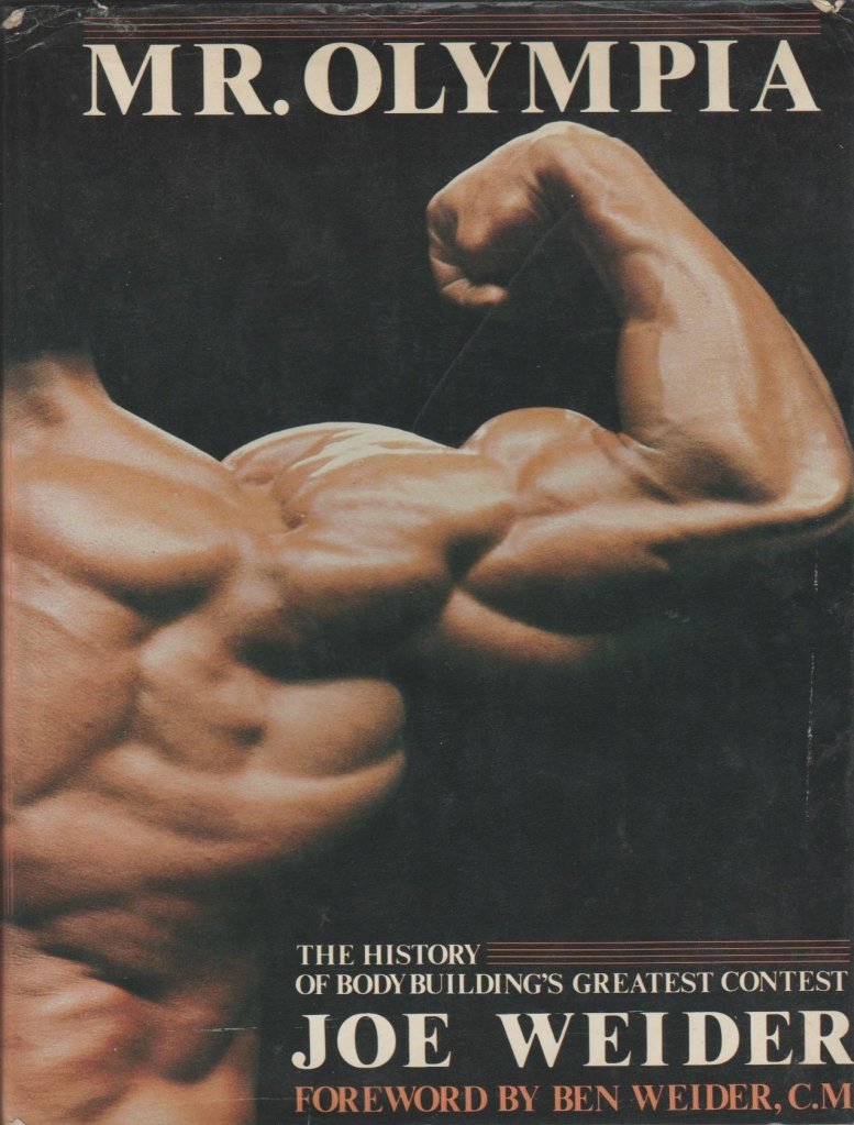 This was a Christmas gift from Sarah. A used book store find for her. With a forward from Ben Weider and written by Joe Weider. Published in 1983, it is a picture and word history of the first 18 years of the Mr. Olympia competition. It features some of the history of the formation of the contest. It has some breakdowns of several of the contests, starting with the years of 3-5 competitors a year and through the growth of the event. It has some typical Weider schilling, of course. Joe might be the best salesman the sport has seen still.